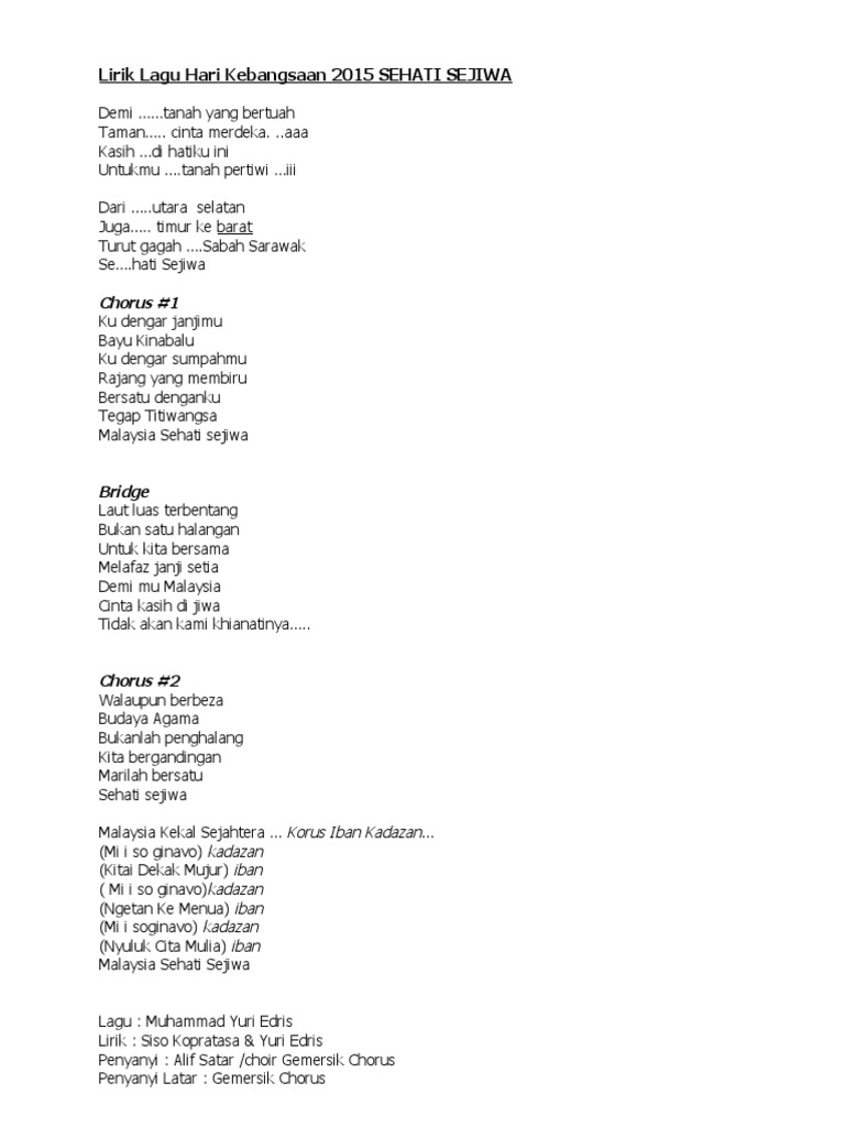 Doc Lirik Lagu Tema Merdeka 2015 Sehati Sejiwa Haf 8700 Academia Edu
