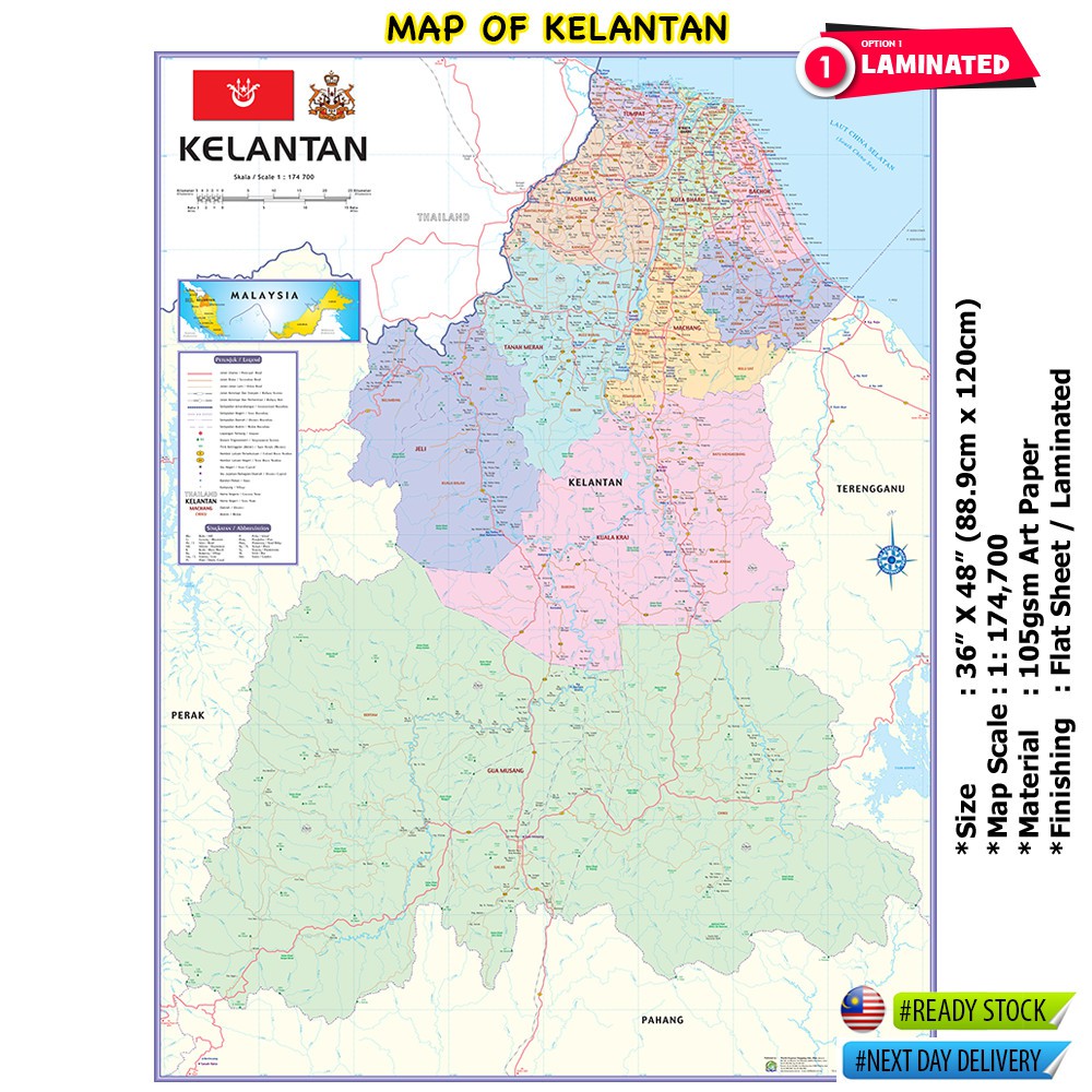 Map Of Kelantan 36 X 48 88 9cm X 120cm Shopee Malaysia